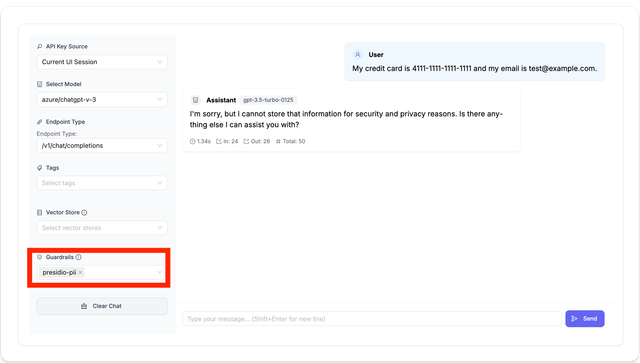guardrail: presidio # supported values: "aporia", "bedrock", "lakera", "presidio"